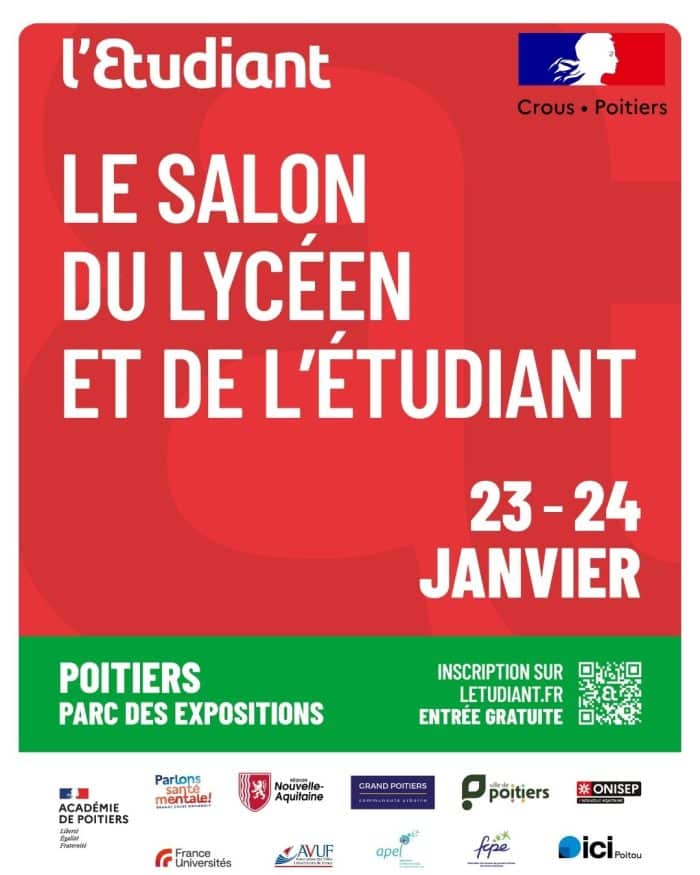 Le Salon du lycéen et de l’étudiant à Poitiers ouvrira ses portes pour sa 35e édition, le vendredi 23 janvier et le samedi 24 janvier 2026 au Parc des Expositions – Les Arènes ! Véritable lieu d’échanges et de découvertes, cet événement important du paysage éducatif est organisé en partenariat avec l’académie de Poitiers, la région Nouvelle-Aquitaine, Grand Poitiers, la ville de Poitiers et l’ONISEP Nouvelle-Aquitaine.